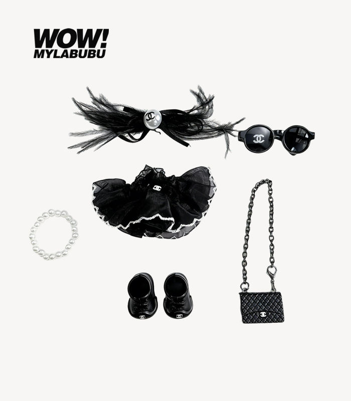 Be the first to review “LABUBU Luxury Outifits Chanel Feather and Lace Clothes (Black)” Cancel reply