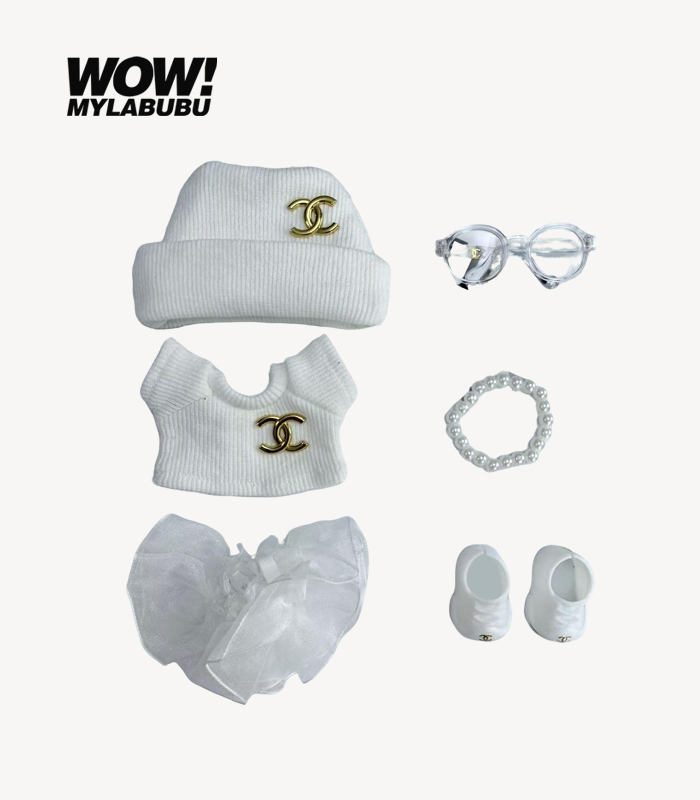 LABUBU Luxury Outifits Chanel Pearl Sweater Skirt Clothes