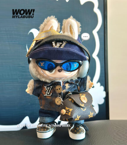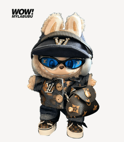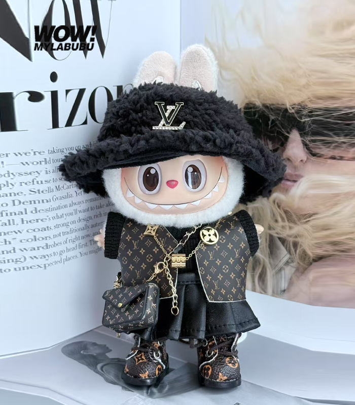 Be the first to review “LABUBU Luxury Outifits LV Gold necklace and leather skirt set”